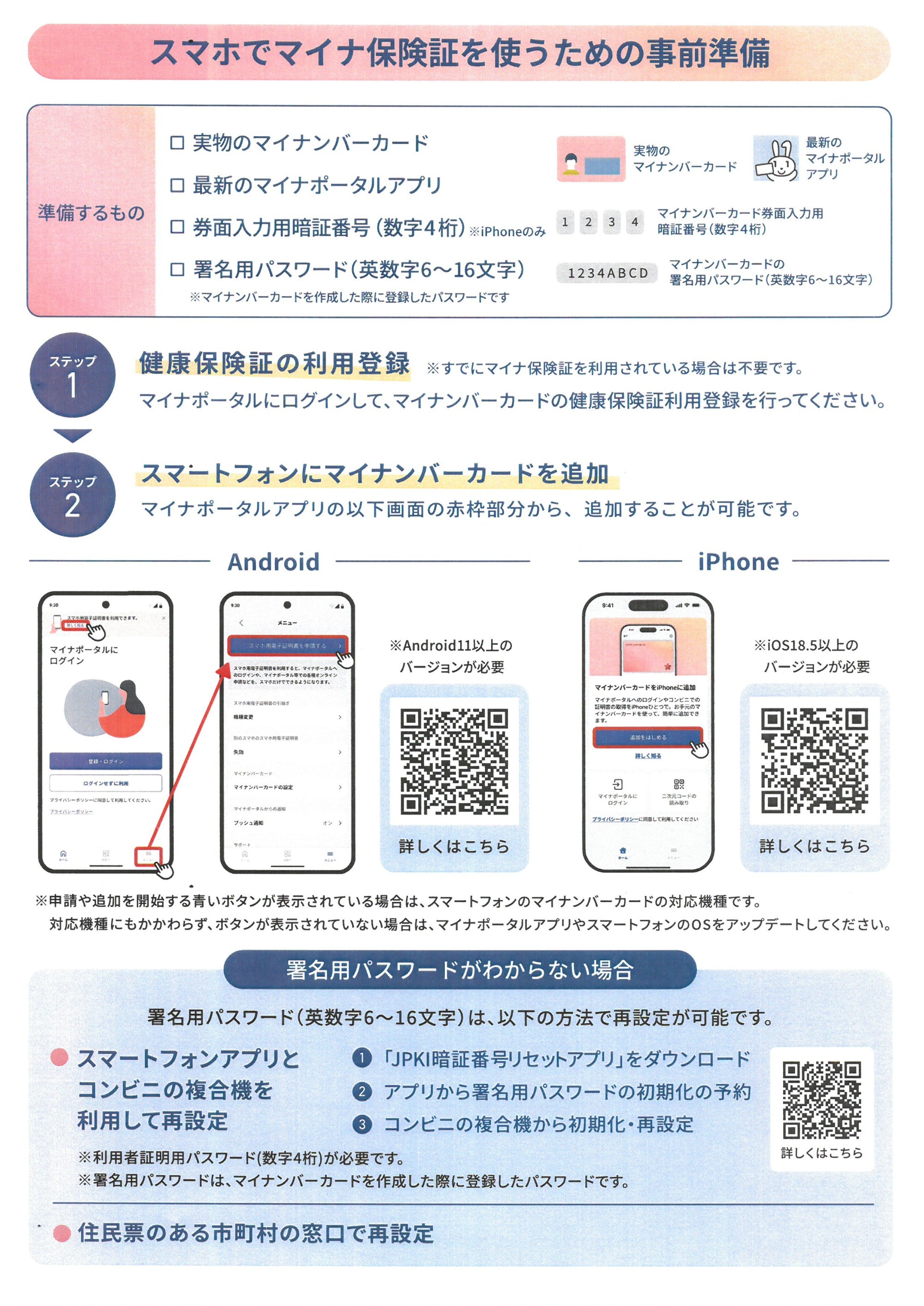 マイナ保険証がスマホで受付できます。来局前に事前準備をお願いします。